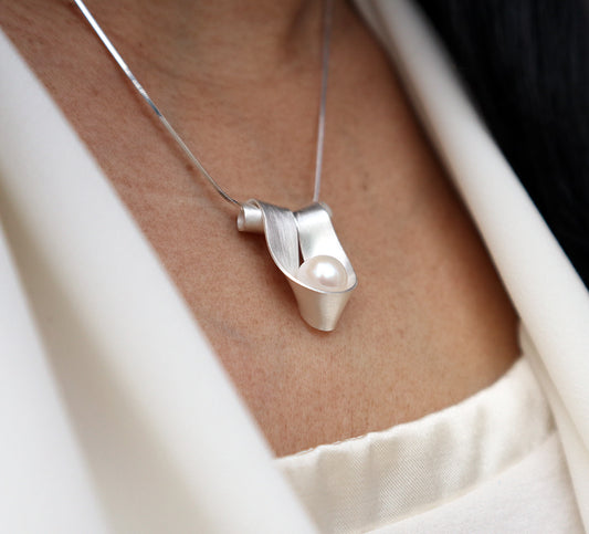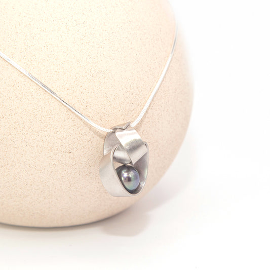 Ribbon Pendant with Freshwater Pearl - Large