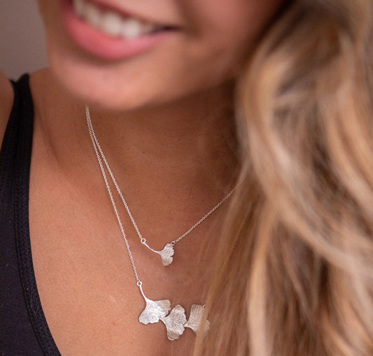 The ginkgo's delicate, distinctive leaves are both beautiful and deeply symbolic. Each leaf represents hope, peace, longevity, and incredible endurance—making them as unforgettable as they are breathtakingly lovely. Each piece captures and compliments the graceful lines found both in the natural world and in ourselves.